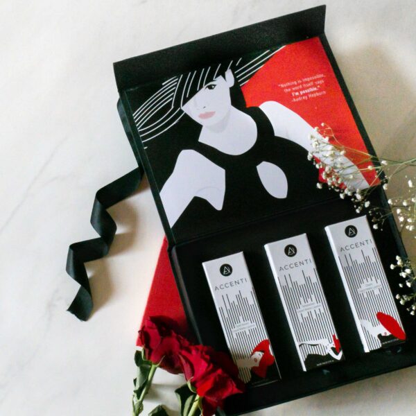 It includes Accenti Signature Series Liquid Matte lipsticks in the shades Temptation, Spell bound and Charm. It will be perfect gift for anyone on any occasion.